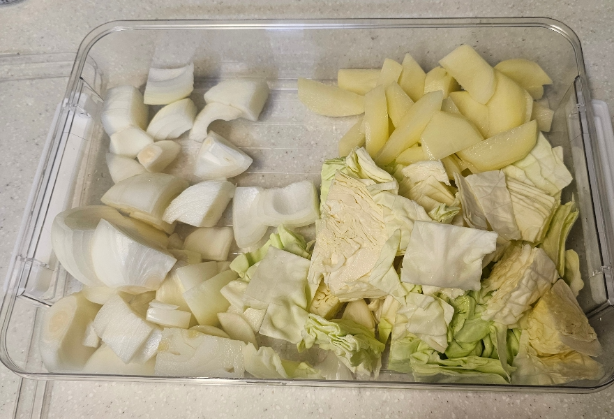 - 양배추, 양파, 대파, 당근 (채소는 기호에 맞게 준비해요)